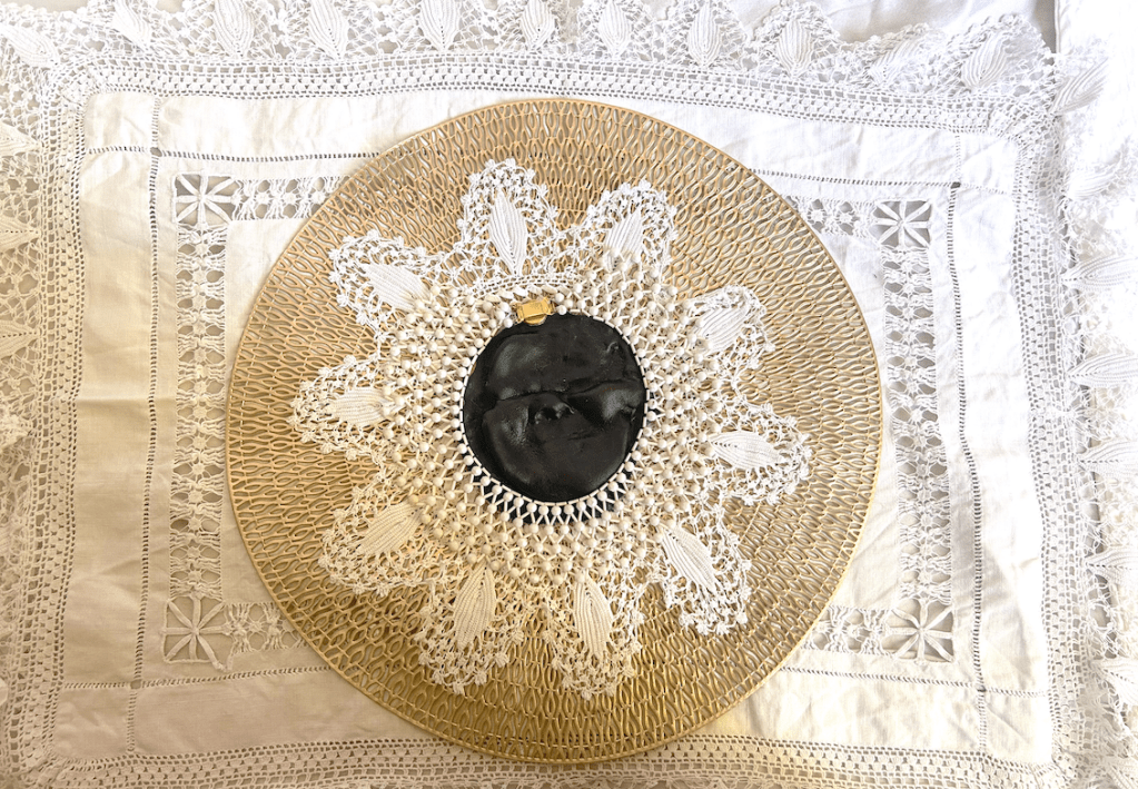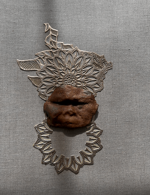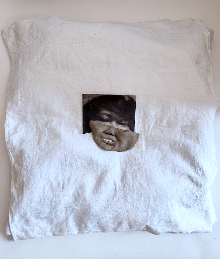 In Her, I am her(e), I present a circular notion of time, history, repetition and resemblance by using clay as a central component of ancestral exchange. As I piece together the clay, combining it at times with photography that has been transferred to fabric and at times to the clay itself, I grapple with the tensions between connection and disconnection of generational recovery.